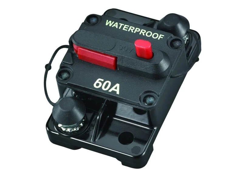 Sicherungsautomat für 12/24/36 Volt mit manueller Rückstellung, wsserdicht nach IP67.